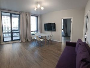 Двухкомнатная квартира в ЖК Европа-Сити. Изолированная комната 15 кв м. и 18 кв.м гостиная, отделенная от кухни арочным проёмом. В каждой комнате своя лоджия и удобный немецкий раскладывающийся диван (в спальне он может быть заменён на кровать). Квартира оборудована всей необходимой мебелью и техникой. Сдаётся впервые. Строго без животных!!! Только на срок от 11 месяцев!