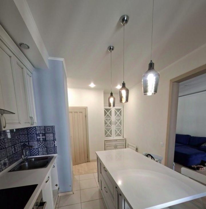 Сдается уютная просторная квартира в ЖК Европа Сити, с большой кухней - 18 кв.м, две комнаты, из гостинной - 18 кв.м вход в кухню, из кухни вход в спальню - 15 кв.м, санузел совмещенный.