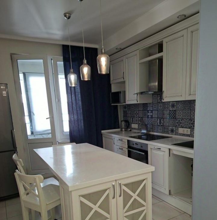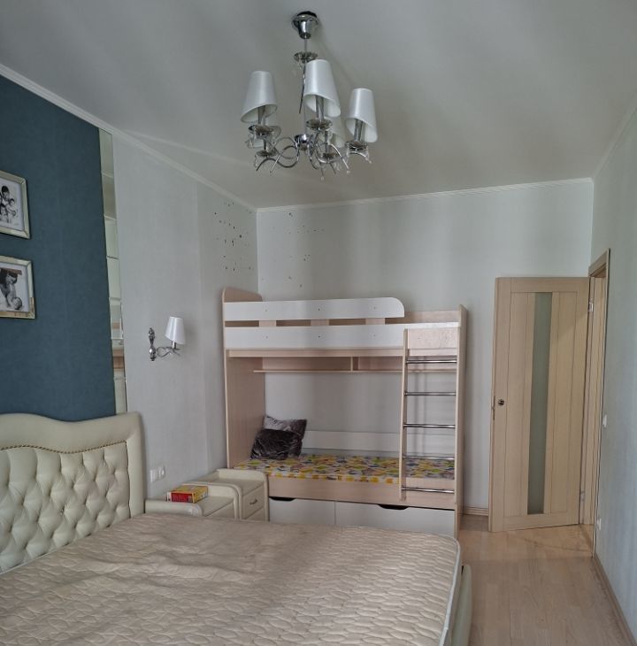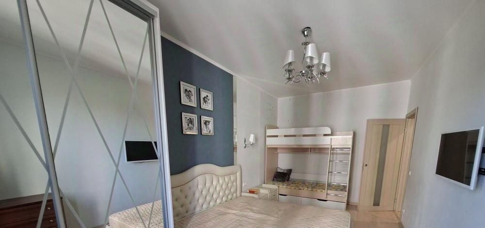 В квартире есть всё необходимое для комфортной жизни: кухонный гарнитур, посудомоечная машина, холодильник, стиральная машина, микроволновая печь, электрическая варочная панель, духовой шкаф, пылесос, электрочайник, двуспальная кровать, двуспальный раскладной диван, двухярусная детская кровать, большая застекленная лоджия, гардеробная.