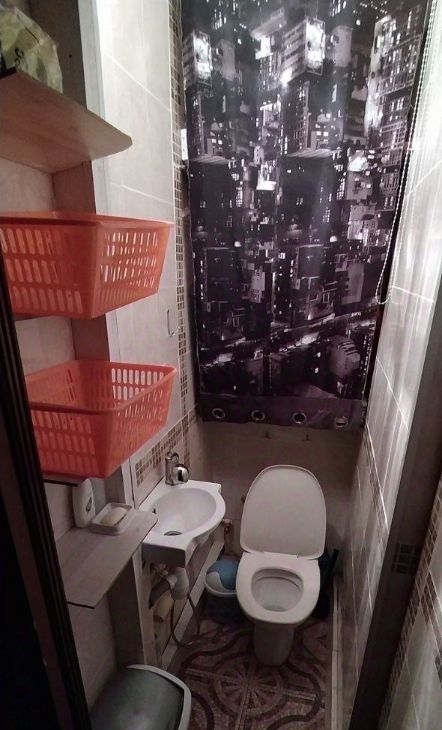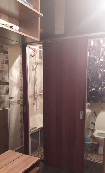 Имеются перегородки в ванне и туалете, которые не мешают свободному проходу, а открываются в бок.