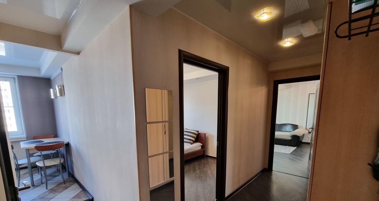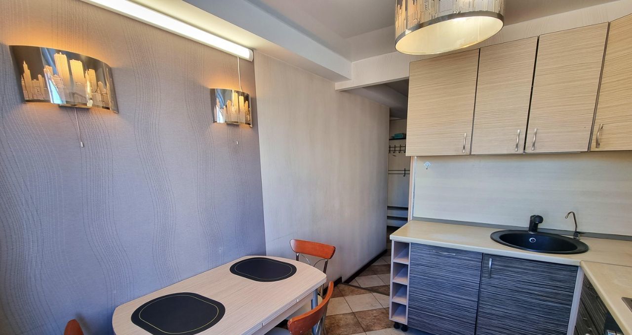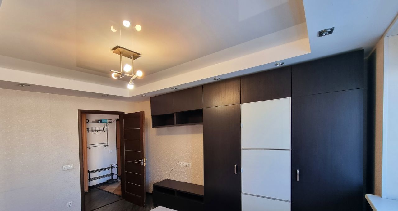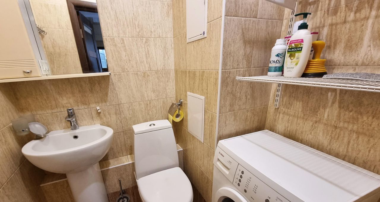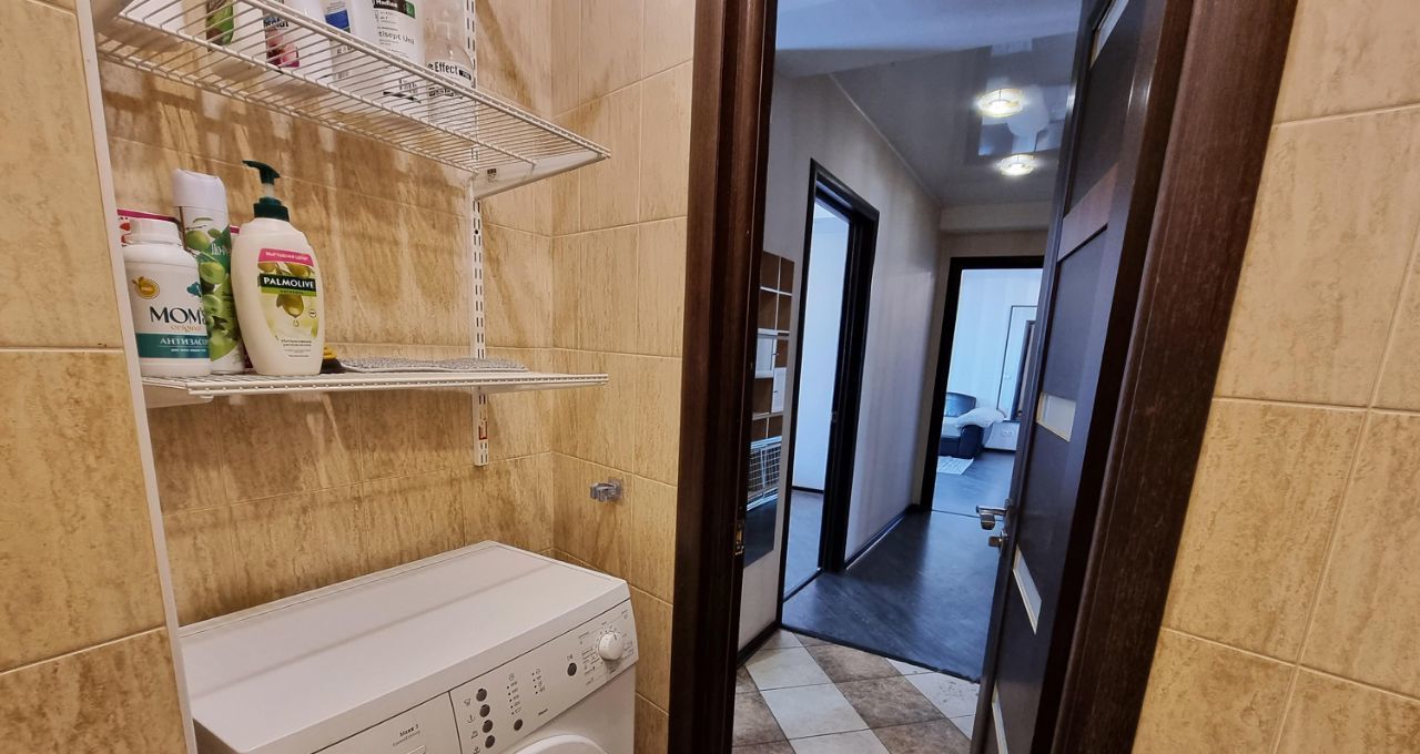 Квартира обустроена всей необходимой мебелью и бытовой техникой для комфортного проживания: вместительный шкаф-купе, большой раздвижной угловой диван, холодильник, стиральная машина, плита, вытяжка, посудомоечная машина и прочее.