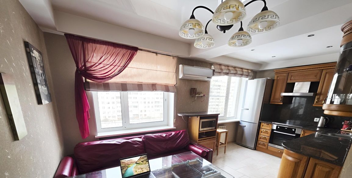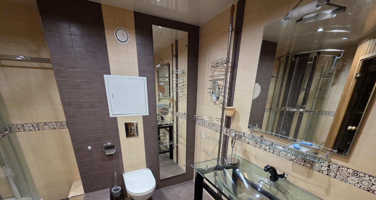 Преимущества: большая стильная кухня гостинная, кондиционеры в квартире, большая панорамная лоджия, барная стойка на кухне, САУНА в квартире! Мечта любителей бани и погреться!