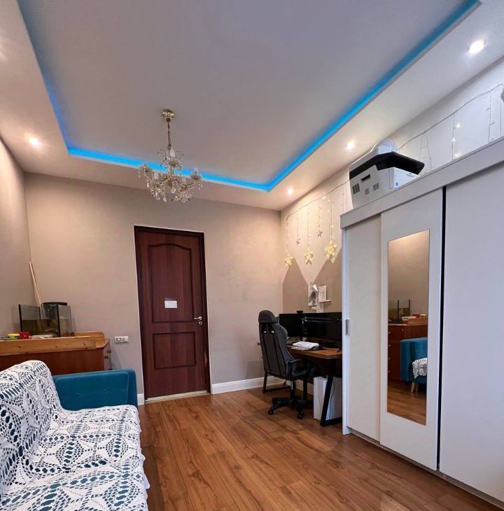 В квартире сделан дизайнерский ремонт, поэтому она готова к комфортному проживанию. Жилая площадь составляет 32 кв. м, а кухня — 8 кв. м, где вы найдете всю необходимую мебель и технику. В вашем распоряжении холодильник, посудомоечная машина, стиральная машина и телевизор. В комнате тоже есть мебель, поэтому можно просто заехать и жить. Ванная комната оборудована душевой кабиной.