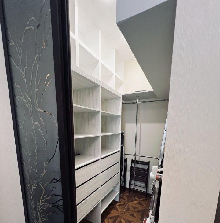 просторная гардеробная с массой мест для хранения вещей