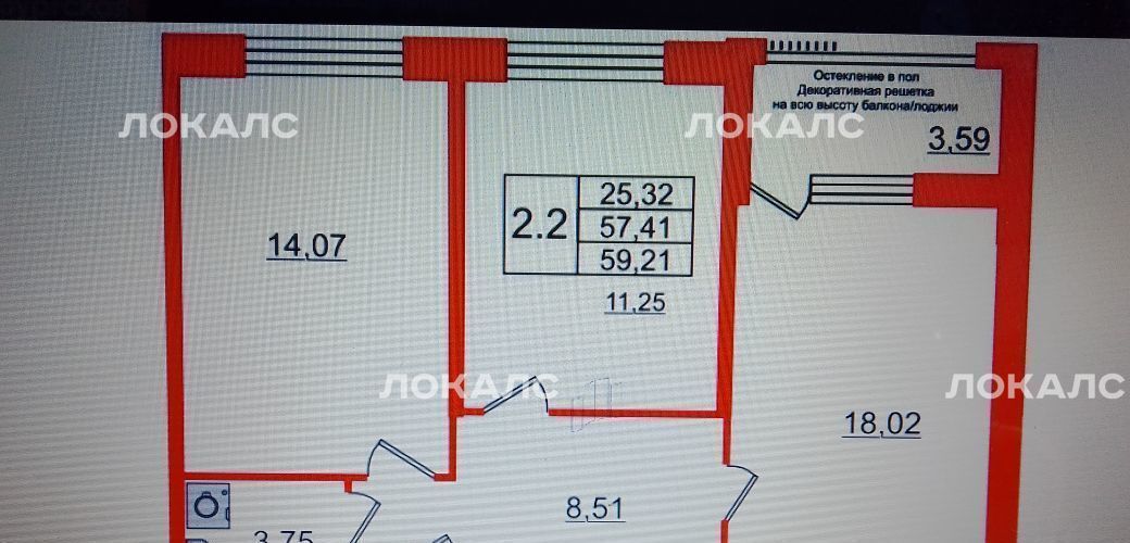 Лоджия 3,5 м2 остекление в пол, розетка.