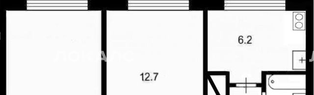 Площадь квартиры 45 кв.м (комнаты 19 кв.м. и 12 кв.м, кухня 6,5 кв.м.).