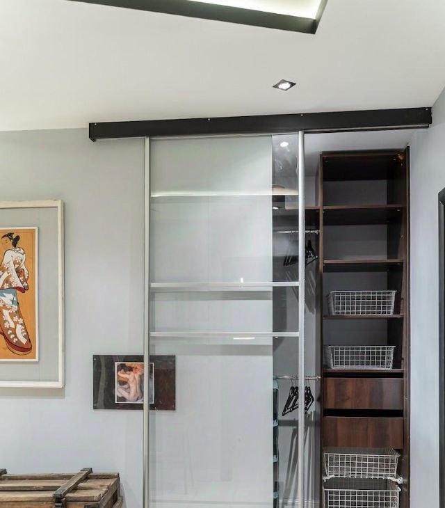 Умная система хранения: встроенная гардеробная/кладовая 1.1 м² с раздвижной дверью и выдвижными ящиками.