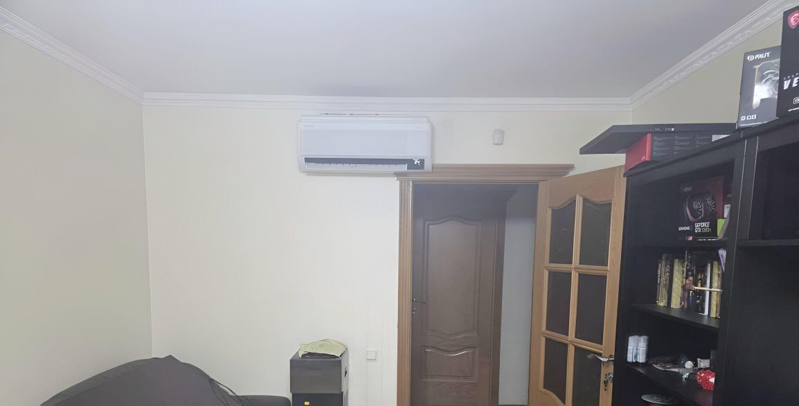 Продаётся просторная двухкомнатная квартира. Легальная перепланировка из трехкомнатной. В каждой комнате и гостиной кондиционер. На кухне и в ванной тёплый пол. Проводка заменена, трубы и батареи заменены, в каждой комнате интернет-розетки. Балкон и лоджия застеклены. Требуется косметический ремонт: замена напольных покрытий и обоев. Продаю с мебелью и кухонной техникой.