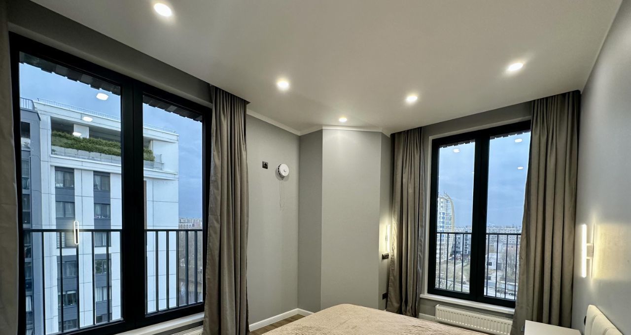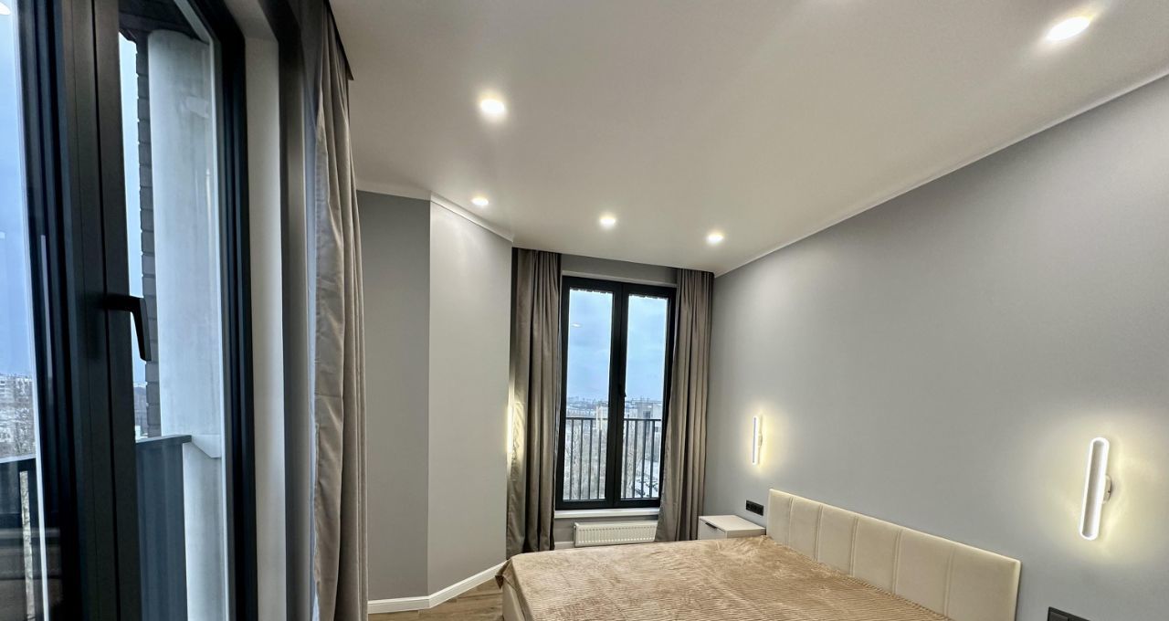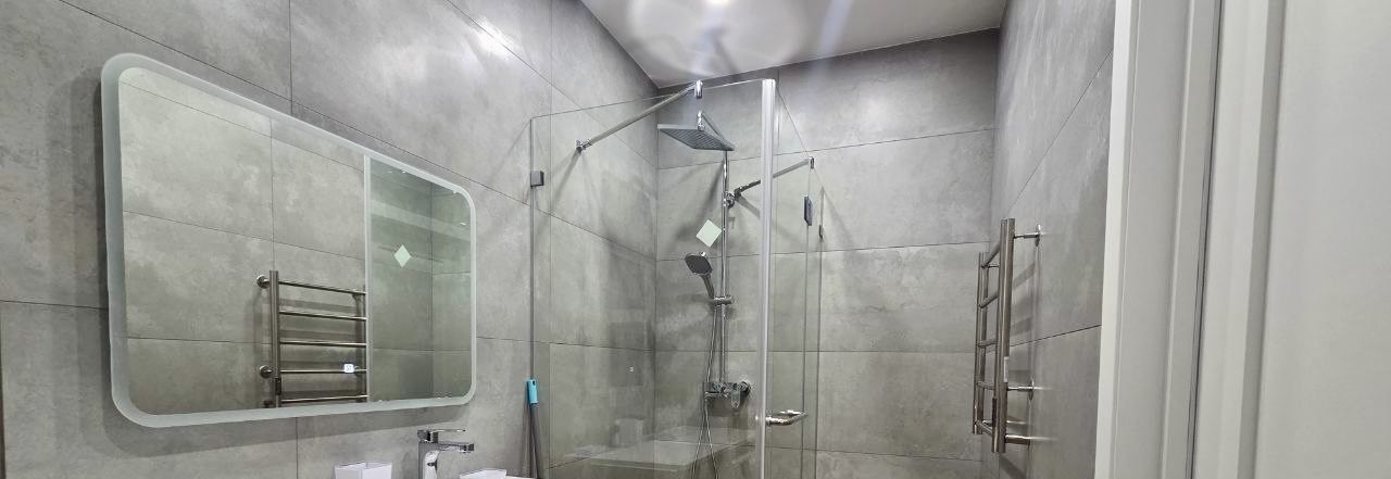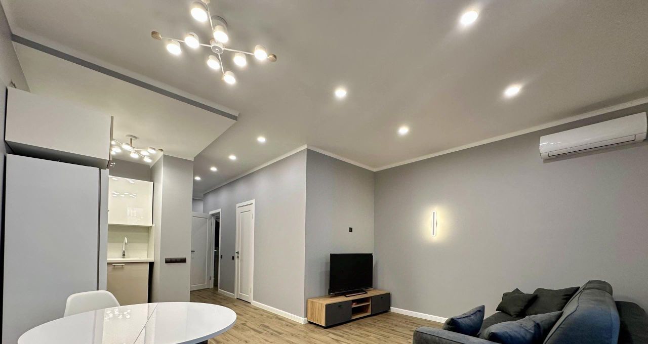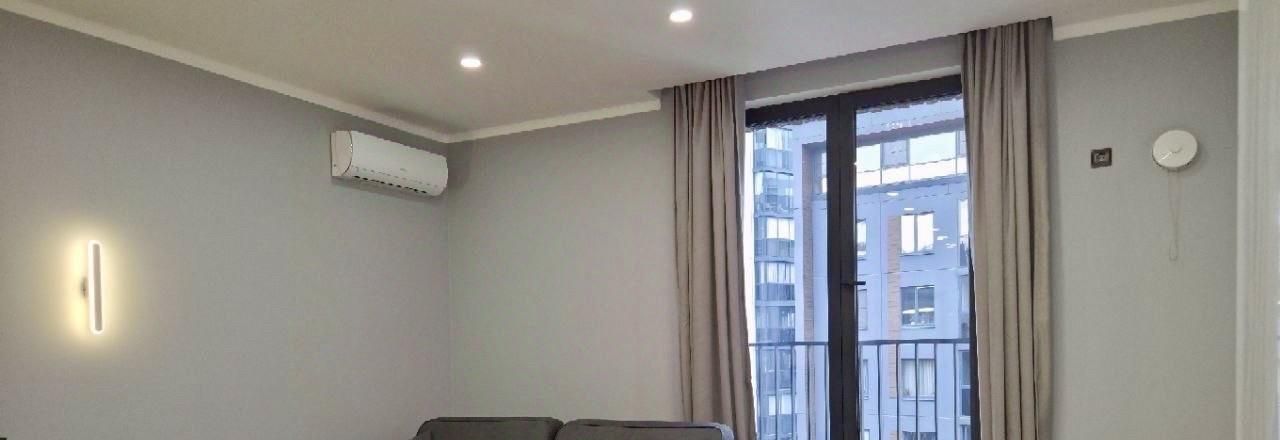 В квартире сделан евроремонт, она полностью готова к заселению. На кухне установлена современная мебель и техника: холодильник, посудомоечная машина и кондиционер. В комнатах также есть вся необходимая мебель для комфортного проживания. В ванной комнате установлена душевая кабина, а также есть стиральная машина и телевизор.