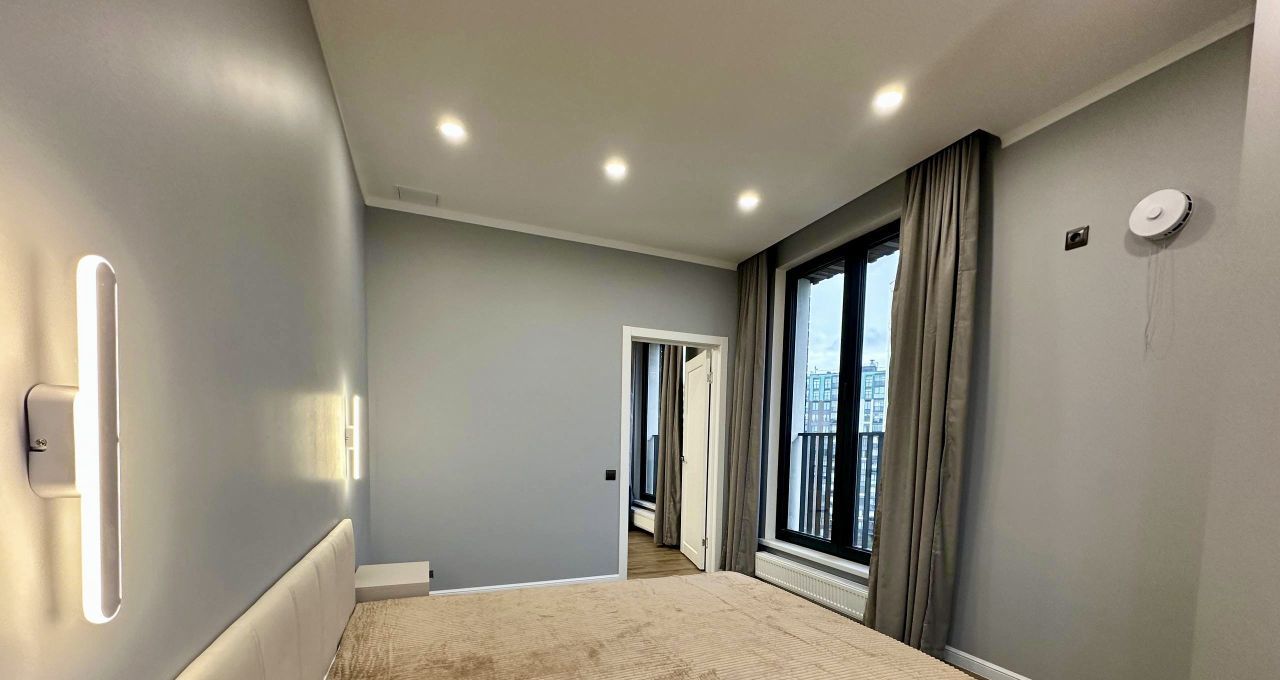 - По планировке: просторная кухня-гостиная, уютная спальная, совмещенный сан.узел с душем и большая гардеробная;