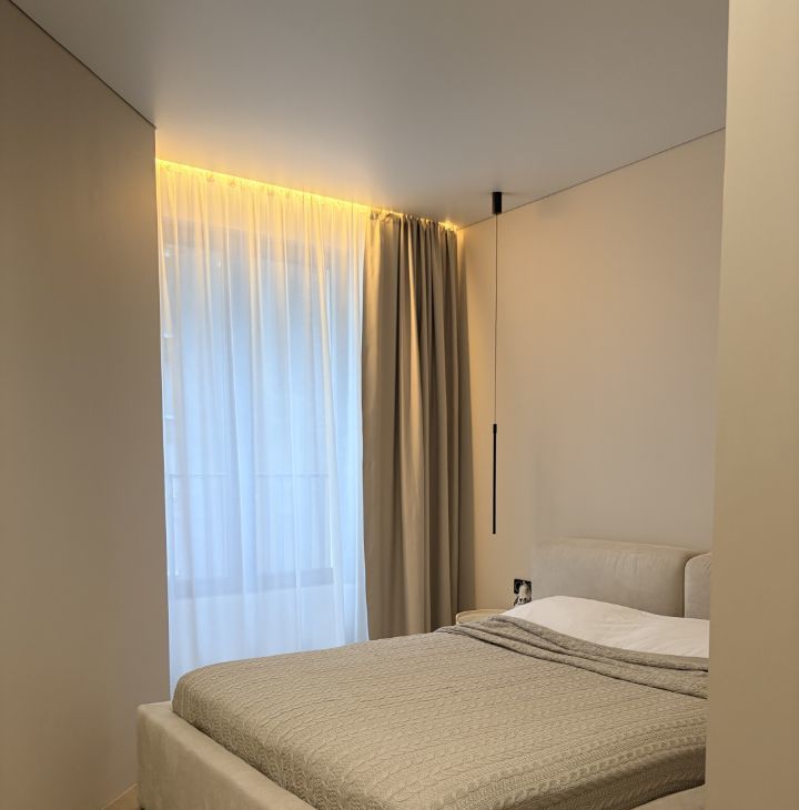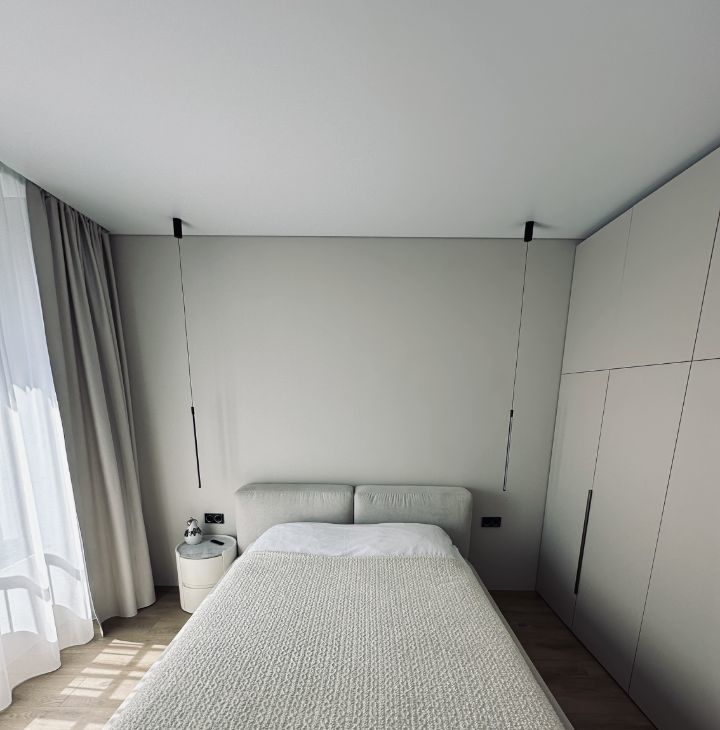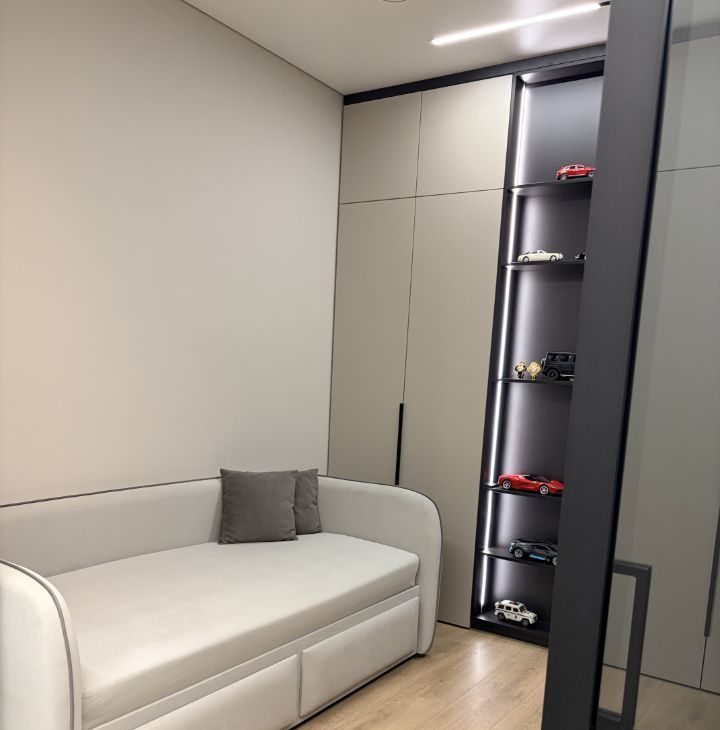 Две изолированные комнаты, просторная гостиная, а также есть гардеробная.