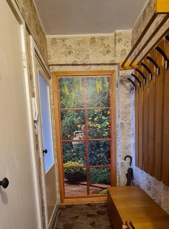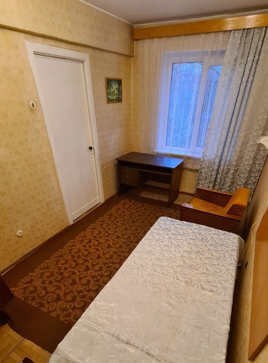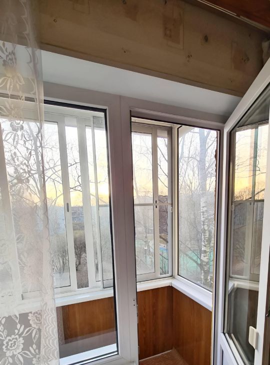 Уютные две комнаты 12+18 кв. м. смежные, кухня- 6 кв. м. Санузел совмещенный. Небольшая прихожая и коридор. Во всех помещениях есть межкомнатные двери. Пластиковые окна, недавно застекленный балкон, выходят во двор. Во дворе много зелени.