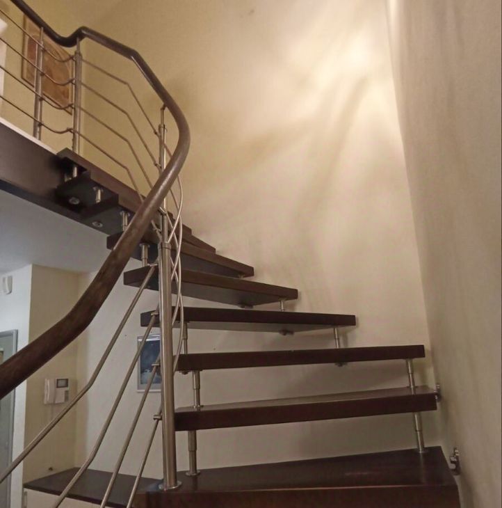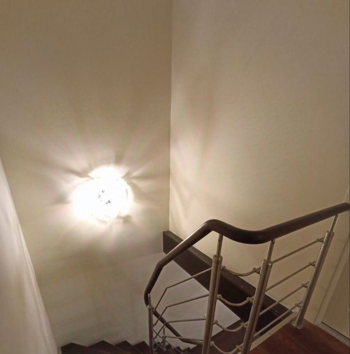 - Привлекательная лестница, ведущая на второй этаж, придает интерьеру особый шарм.