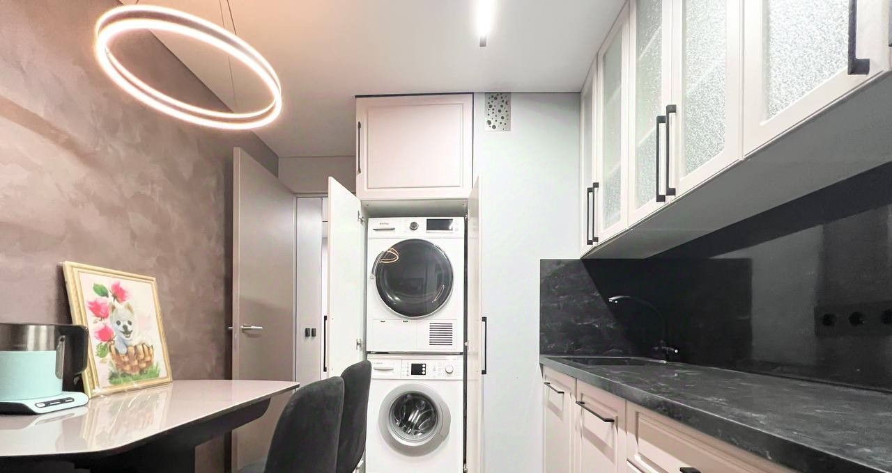 Квартира сдаётся впервые. В ней есть всё необходимое для комфортного проживания: , кондиционеры, много мест для хранения вещей, сушильная и посудомоечная машина; бойлер, ремонт из материалов премиумкласса и т.д.