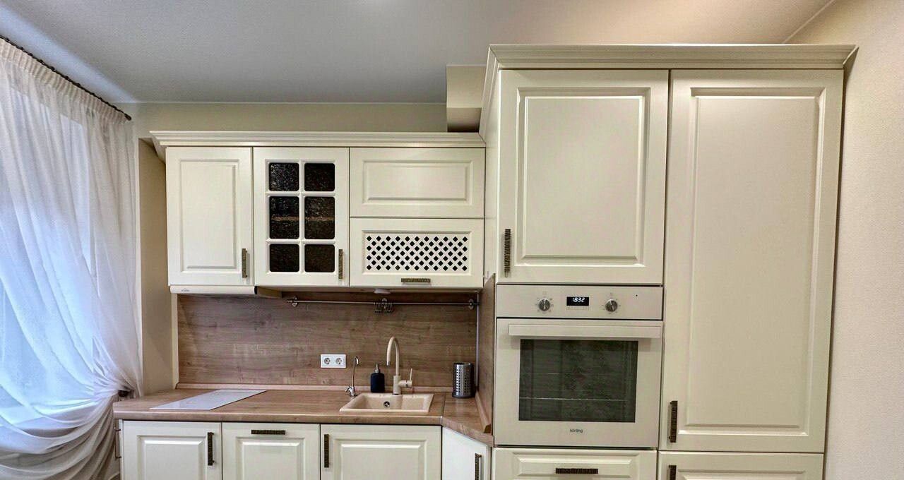 Кухня: Оснащена техникой Korting (посудомоечная машина, духовой шкаф, холодильник). Для уютных затратов — стол и стильные велюровые кресла.