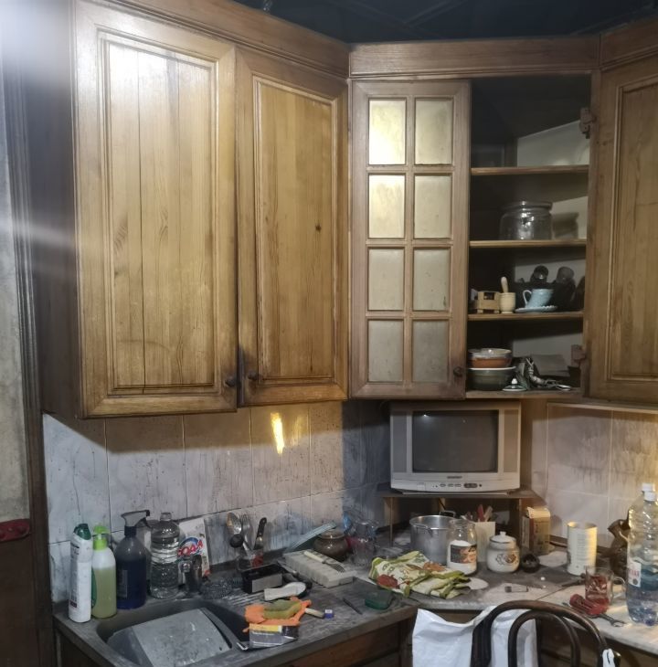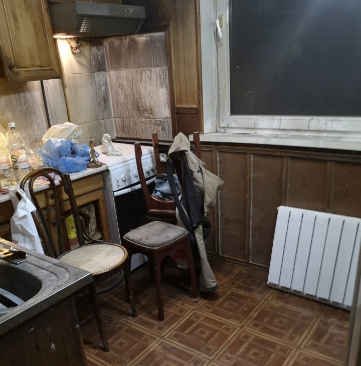 На кухне есть старая мебель и техника.