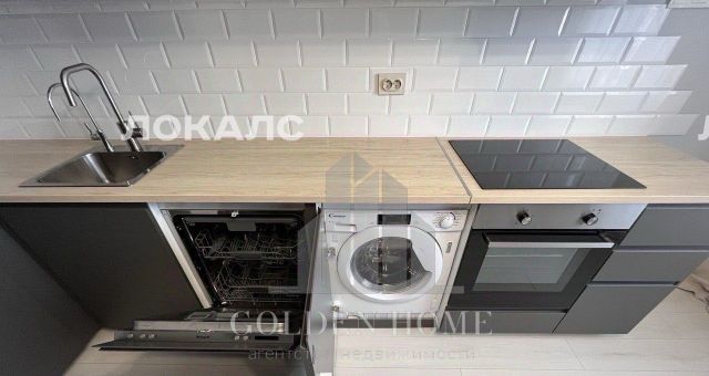 — Вся необходимая бытовая техника: холодильник, варочная панель, духовка, посудомоечная машина, стиральная машина, микроволновка