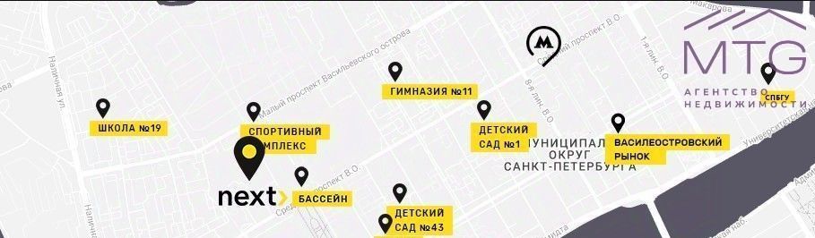 Апарт-отель бизнес-класса NEXT находится в центре престижного Василеостровского района. Он располагается на Среднем проспекте, в 20 минутах ходьбы от метро Василеостровская и Приморская. Отличное местоположение и близость к главным достопримечательностям Петербурга делает апартаменты NEXT удобным местом для жизни.
