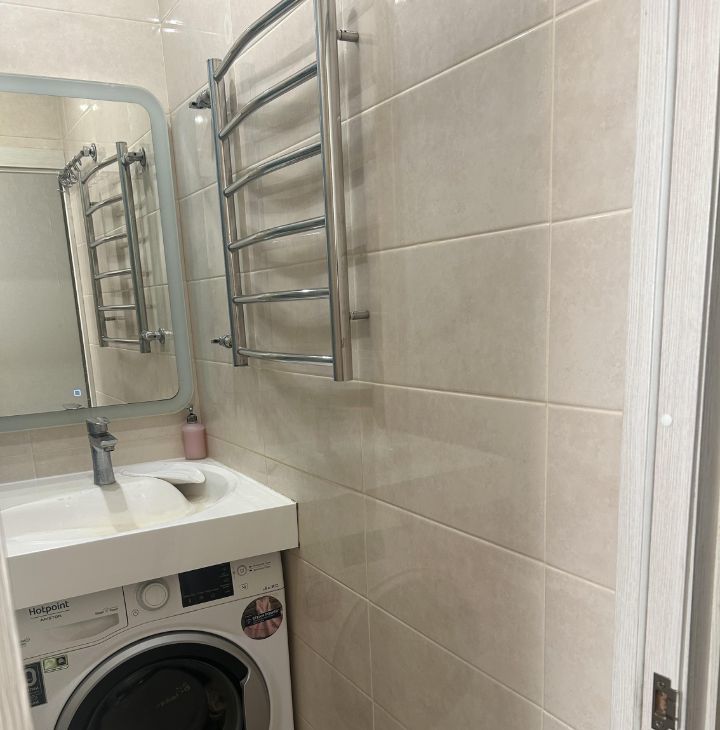 В квартире сделан современный ремонт. Уютная обстановка и наличие всей необходимой мебели создают атмосферу домашнего уюта. Кухня оснащена мебелью и техникой: холодильником и посудомоечной машиной. В комнатах есть телевизоры, а в ванной — стиральная машина и ванна. Окна выходят во двор, что обеспечивает тишину и спокойствие.