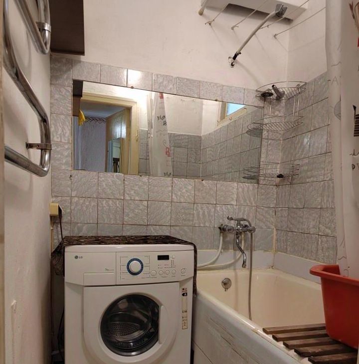 В комнате в наличии диван - кровать, кресло-кровать, тахта, стенка, шкафы, столы, тумбы, телевизор, стиральная машинка.
