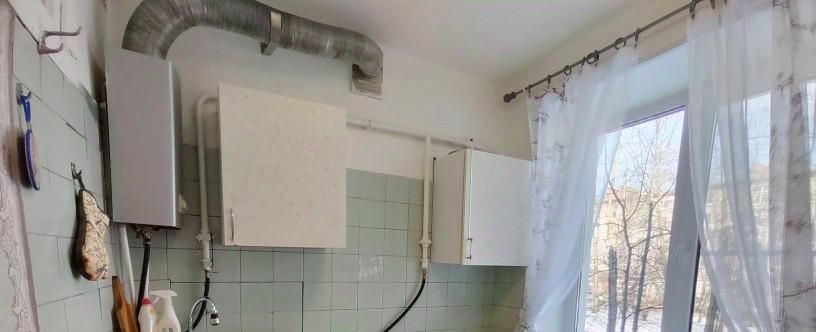 На кухне: кухонный гарнитур, холодильник, стол, стулья, микроволновая печь, газовая плита с духовкой, чайник и посуда. Установлены стеклопакеты, счетчики на ХВС, горячая вода-газовая колонка.