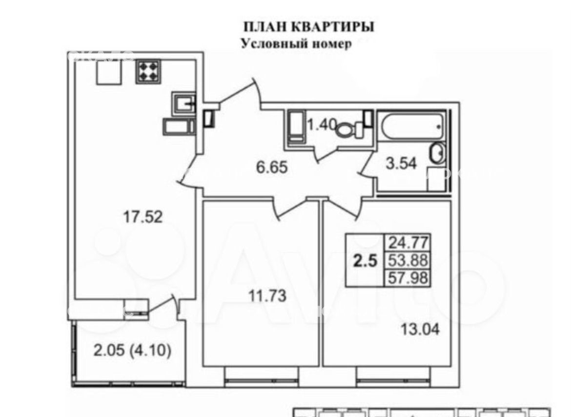 2-комнатная квартира: Санкт-Петербург, проспект Энергетиков, 9к1 (54 м²)