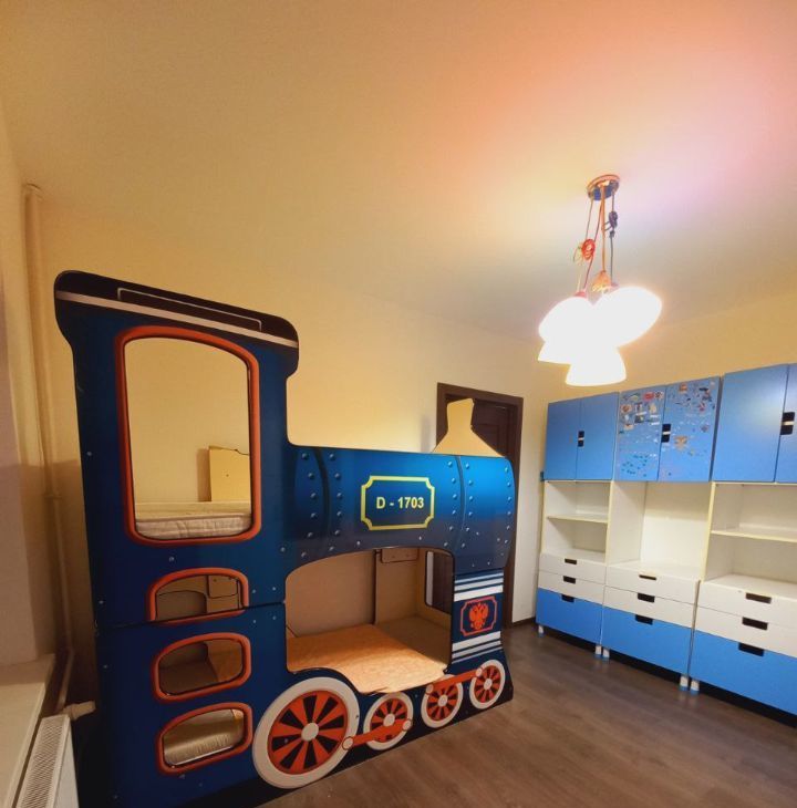 Бывшую детскую комнату можно переоборудовать по согласованию с собственником под уютный рабочий кабинет с видом на лес, заменив детскую кровать на рабочую зону в счёт оплаты квартиры.