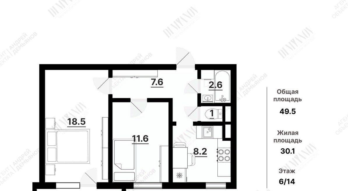 Общая площадь 49.5 кв.м.