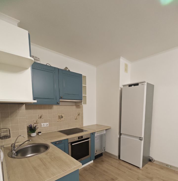 В квартире сделан косметический ремонт, что создаёт приятную атмосферу для проживания. Кухня площадью 5 кв.м оборудована всей необходимой мебелью и техникой, включая холодильник и посудомоечную машину. В комнате также есть мебель, что избавляет от необходимости дополнительных покупок. Санузел раздельный, оснащён ванной, поэтому можно расслабиться после трудового дня. Для удобства проживания подключены интернет и телефон.