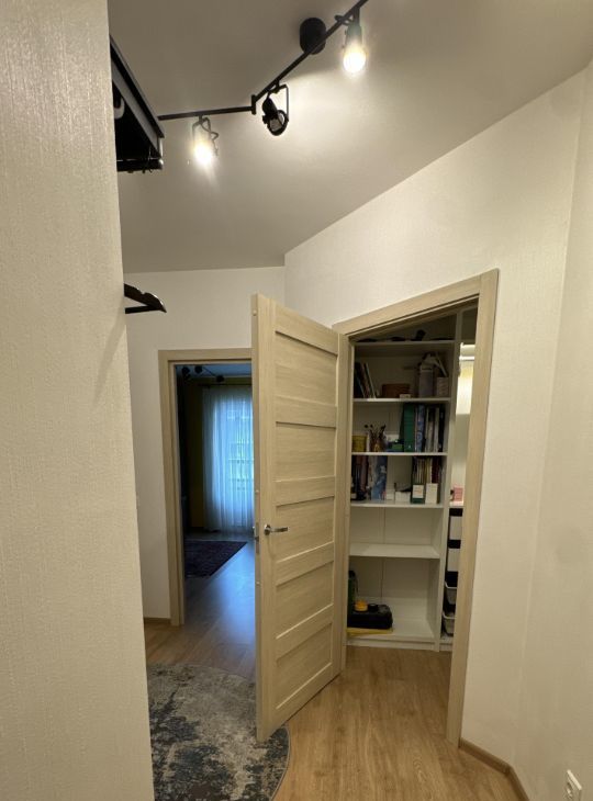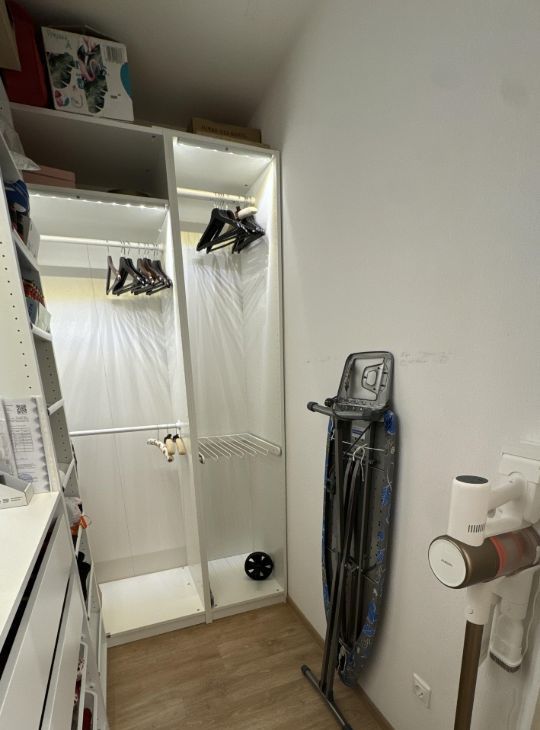 В квартире сделана отдельная гардеробная, что позволяет удобно организовать хранение вещей.