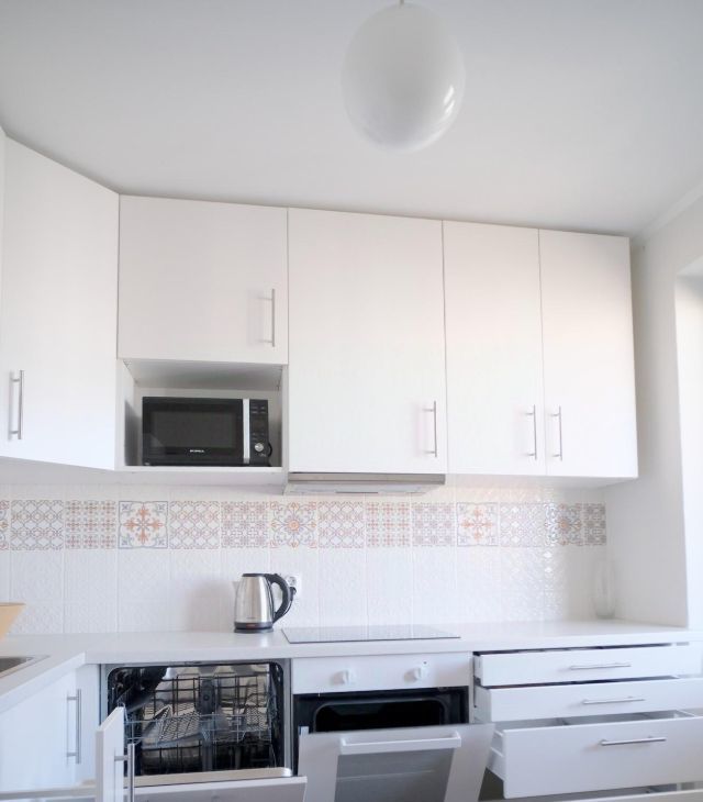 - оборудованная кухня икея с доводчиками, выдвижными ящиками,