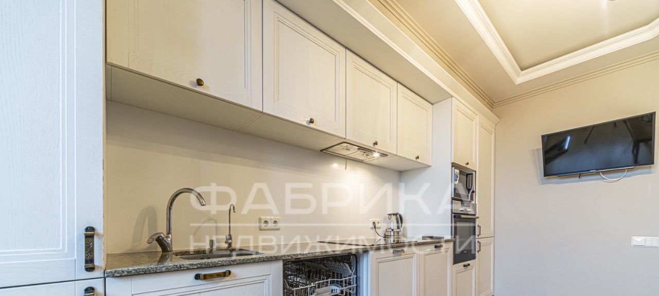 Дизайнерский ремонт, мебель, техника (холодильник, посудомоечная машина, телевизор). Два санузла: один с ванной, другой с душевой кабиной. Окна выходят на улицу и во двор.