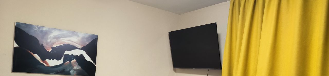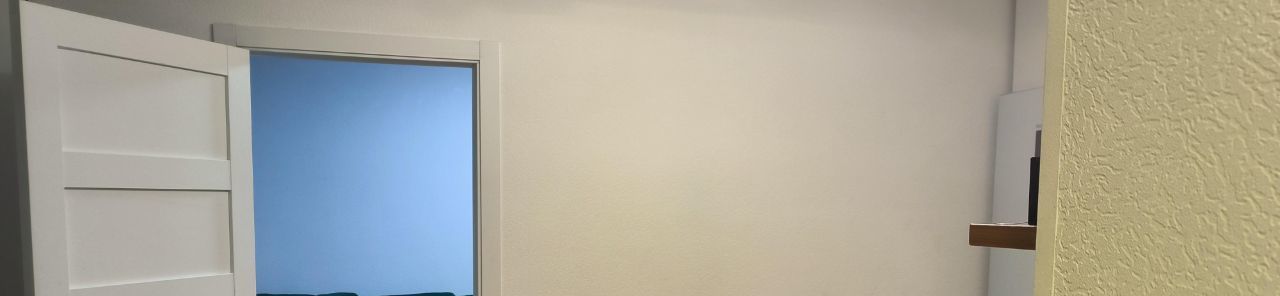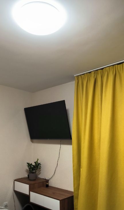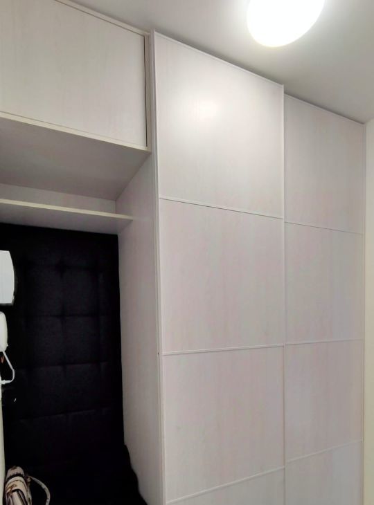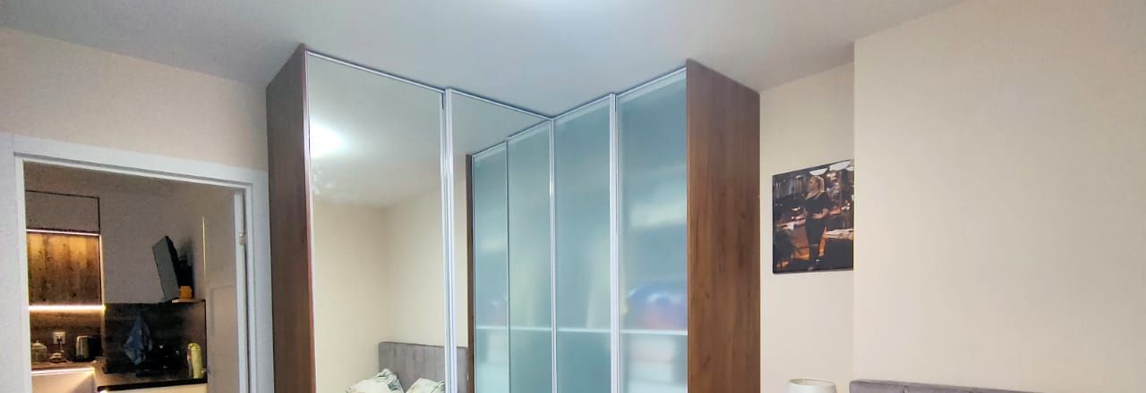 Спальня(13м) с лоджией: огромный встроенный угловой шкаф-купе(сделан под гардеробную), смарт ТВ 50', кровать с ортопедическим матрасом 160*200, подвесные тумбы-ящики, шторы блэкаут, гладилка, сушилка, пылесос, утюг, отпариватель