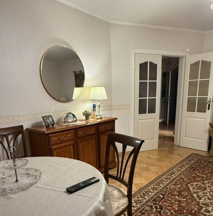 Квартира площадью 90,4 м² расположена на 5 этаже кирпичного дома с лифтом. Планировка продумана: изолированные комнаты, много света (окна на юг и север), простор и ощущение воздуха. Все окна выходят во двор — никакого шума города.