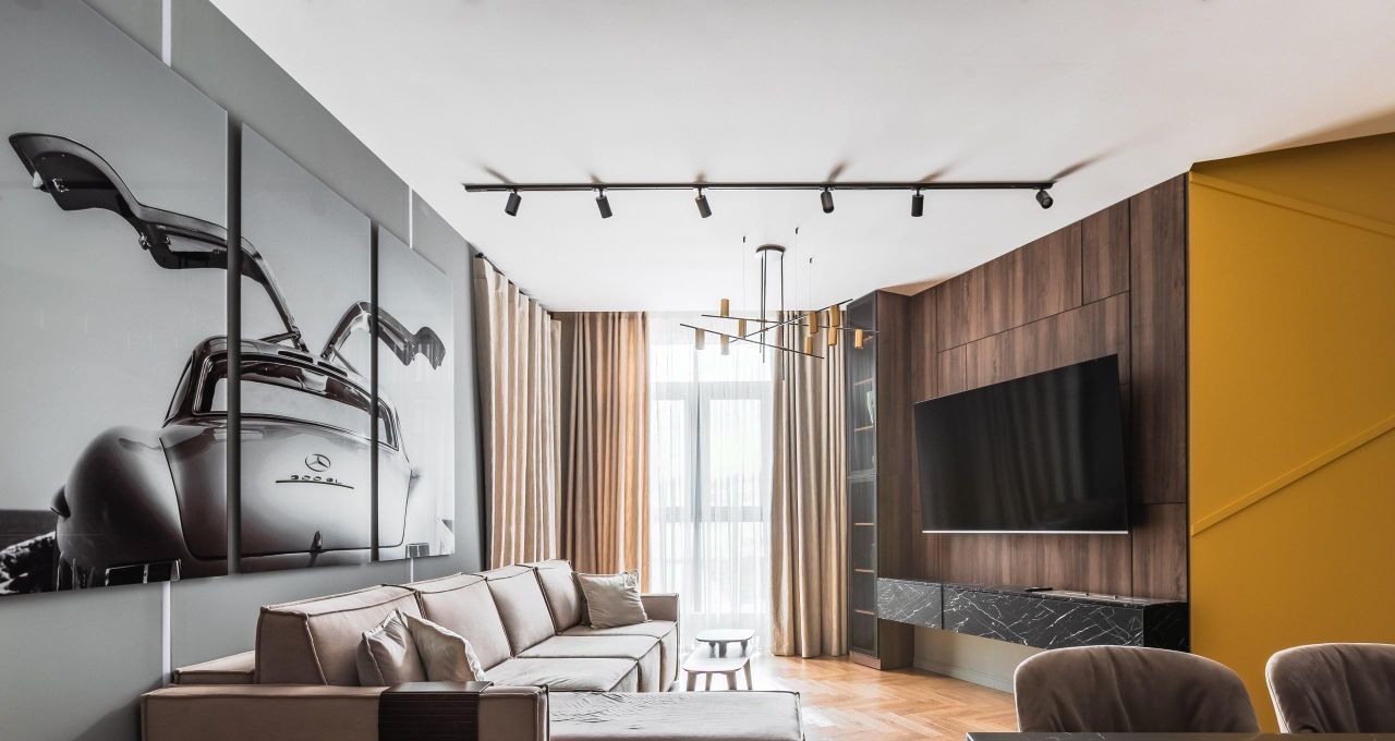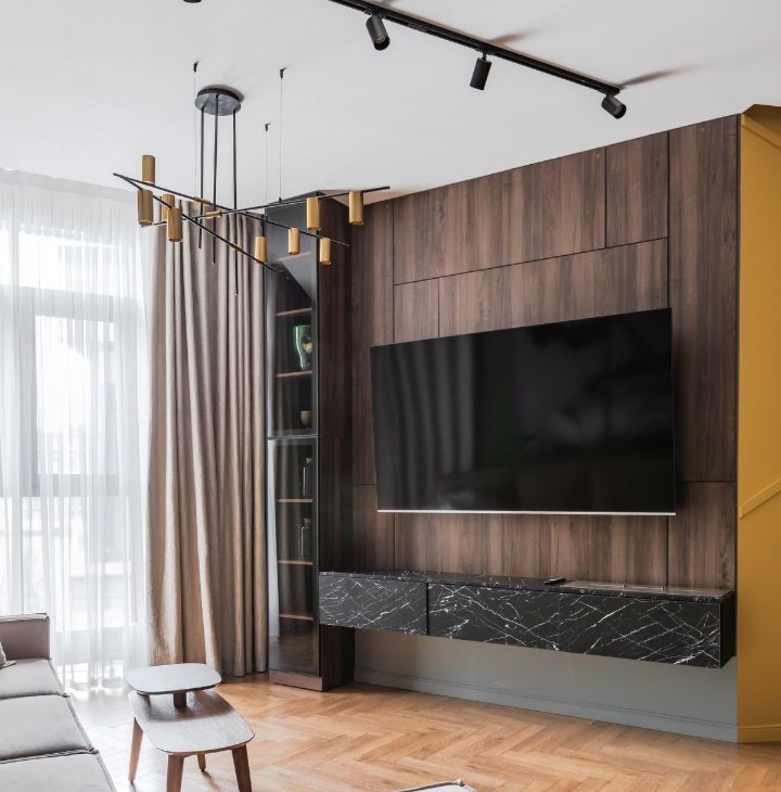 Сдается стильная квартира с продуманным интерьером и качественной отделкой. Спокойная цветовая гамма, натуральное дерево и акцентные детали создают ощущение дорогого, собранного пространства.