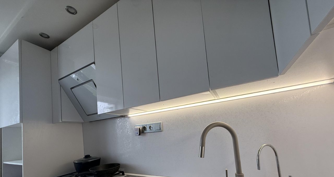 Новая кухня — всё готово для уютных ужинов. Посудомоечная машина.