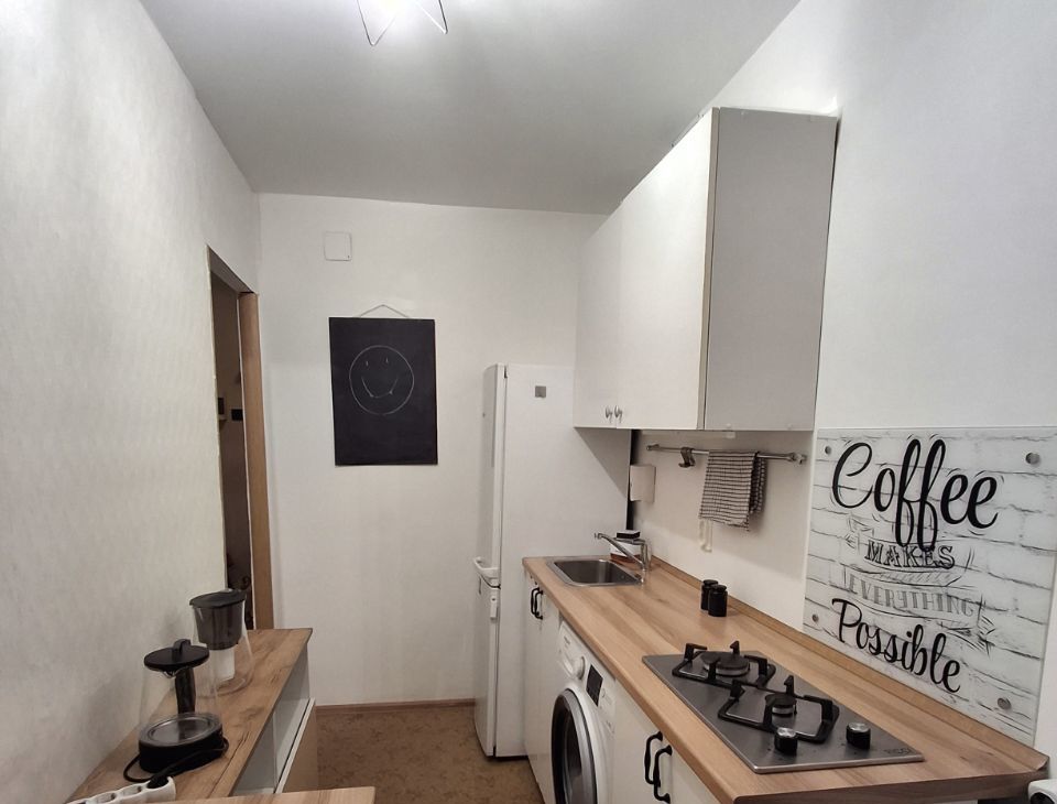 В квартире сделан косметический ремонт. Есть всё необходимое для комфортного проживания: кондиционер, холодильник, телевизор и стиральная машина. В комнатах и на кухне установлена мебель.