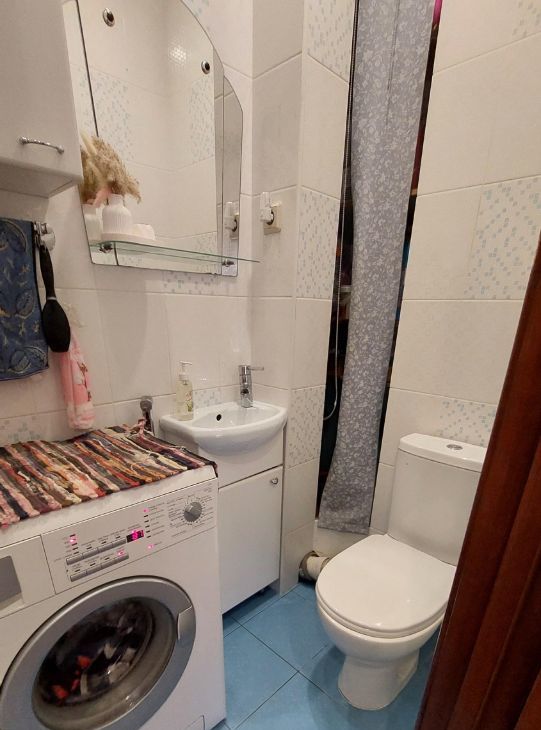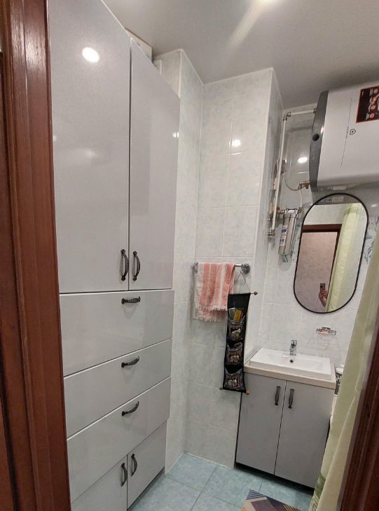 Санузел раздельный. В ванной комнате стоит шкаф для хранения вещей с ящиками.