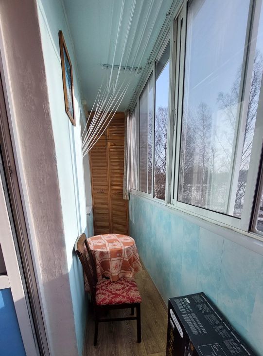 Лоджия оборудована встроенным шкафчиками для хранения.