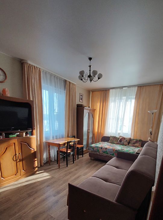 - Гостиная 16.8 кв. м. с выходом на застеленную 5-ти метровую лоджию, с окнами на две стороны, которые наполняют комнату светом и создают ощущение простора, идеальна для отдыха и приёма гостей;
