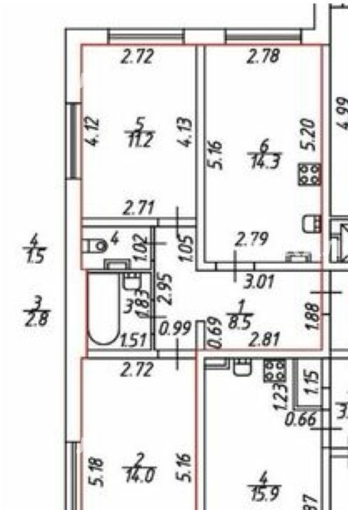 2-к кв. Санкт-Петербург Северный просп., 107 (52.3 м²)