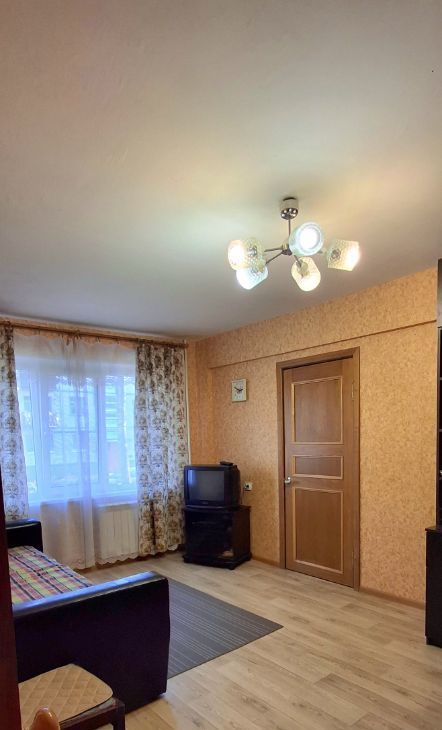 Расположена на 1 этаже. Окна выходят во двор. Комнаты смежные, 17.5 м2 и 11.2 м2. Кухня 6.4 м2. Сан.узел совмещенный. Сухой подвал, чистый подъезд без запахов.
