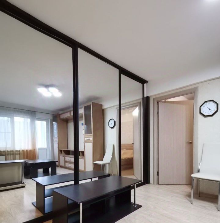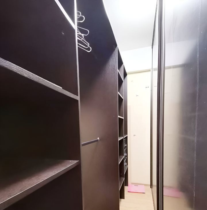 - Большая гардеробная с освещением, закрытая зеркальными дверями