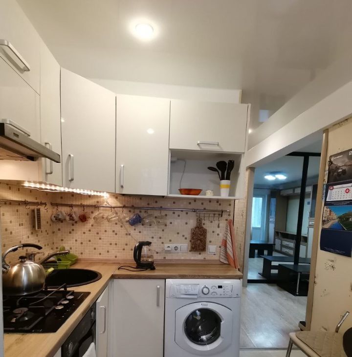 - В квартире есть: холодильник, газовая варочная панель, электрический духовой шкаф, стиральная машина