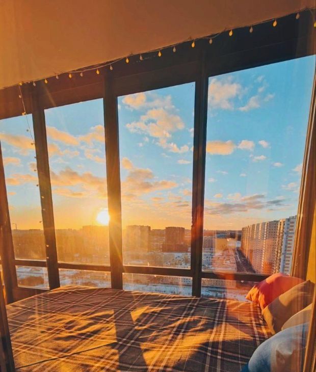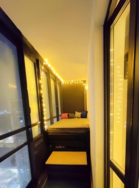 5-Шикарная зона отдыха на балконе (Оборудована ложа с панорамным видом на город, во 2й половине балкона стоит стол)