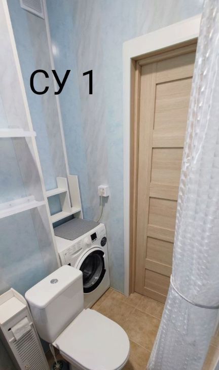 1 СУ (гостевой)- вход с прихожей, душевая кабина, туалет , умывальник и стиральная машина.