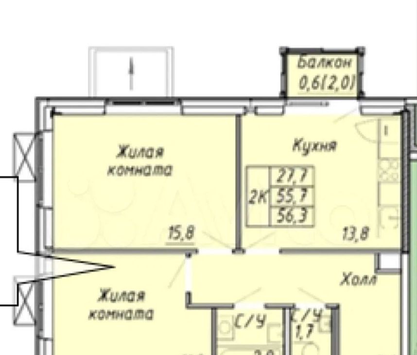 2-к кв. Санкт-Петербург ш. Суздальское, 30к2с1 (57.0 м²)