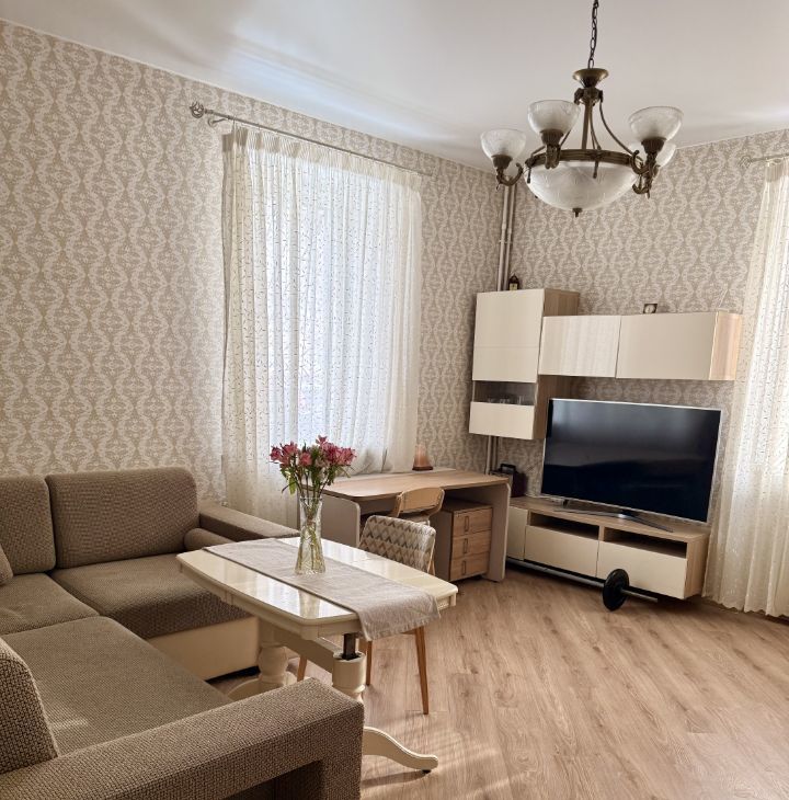 — Раздельный санузел.- Дом кирпичный. 1951 года выпуска.- Полностью готова к проживанию: современная отделка, качественные материалы, светлый ремонт. В комнатах ламинат, в остальных помещениях плитка. В части коридора - теплый пол. Остается часть мебели.