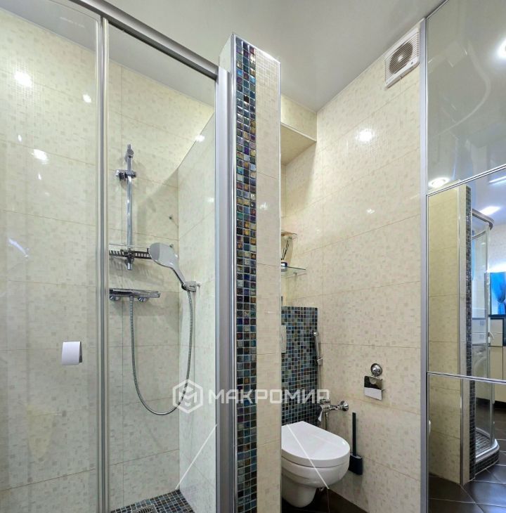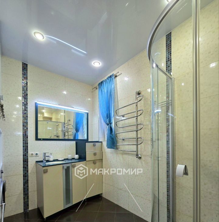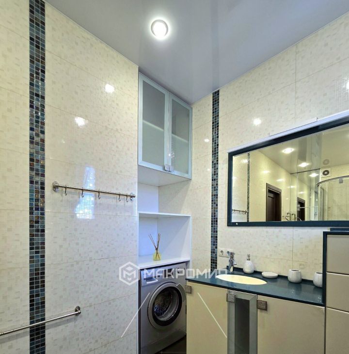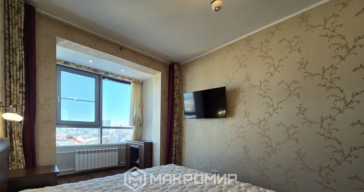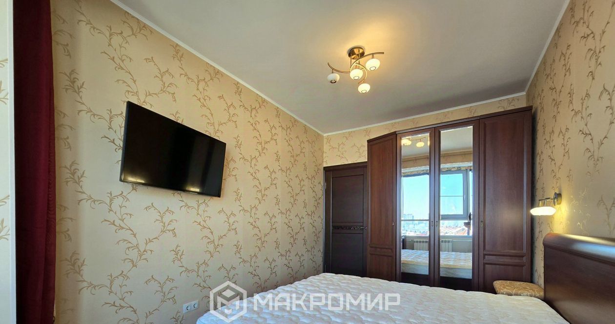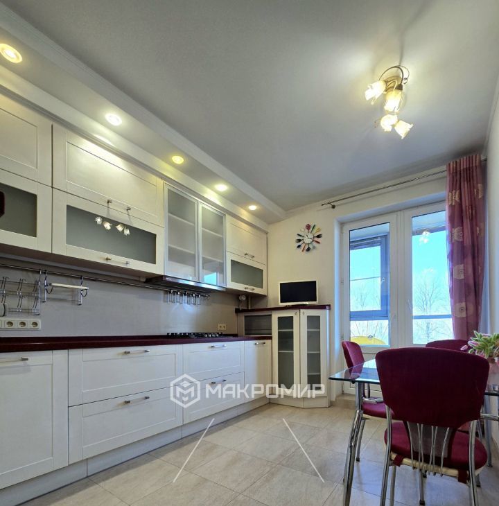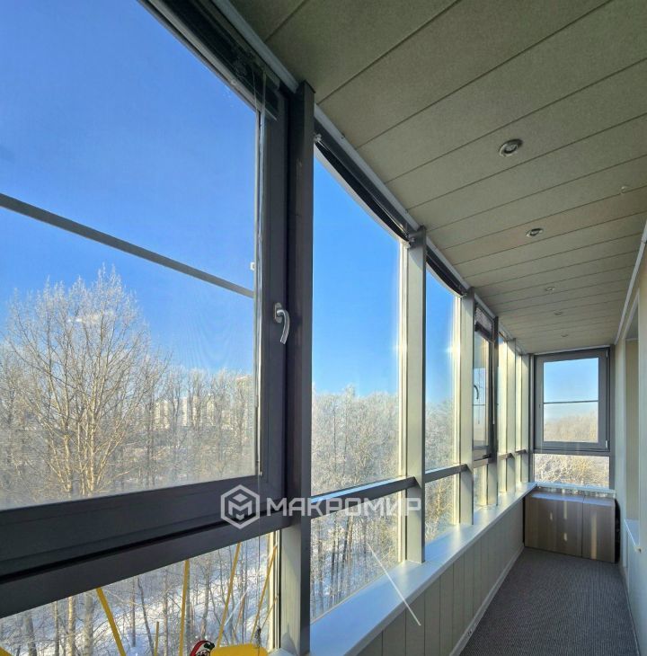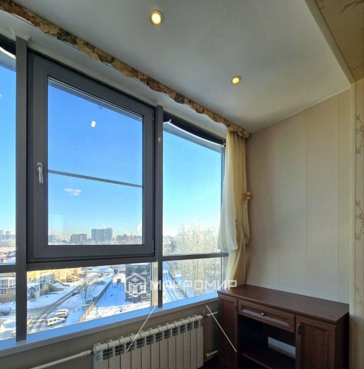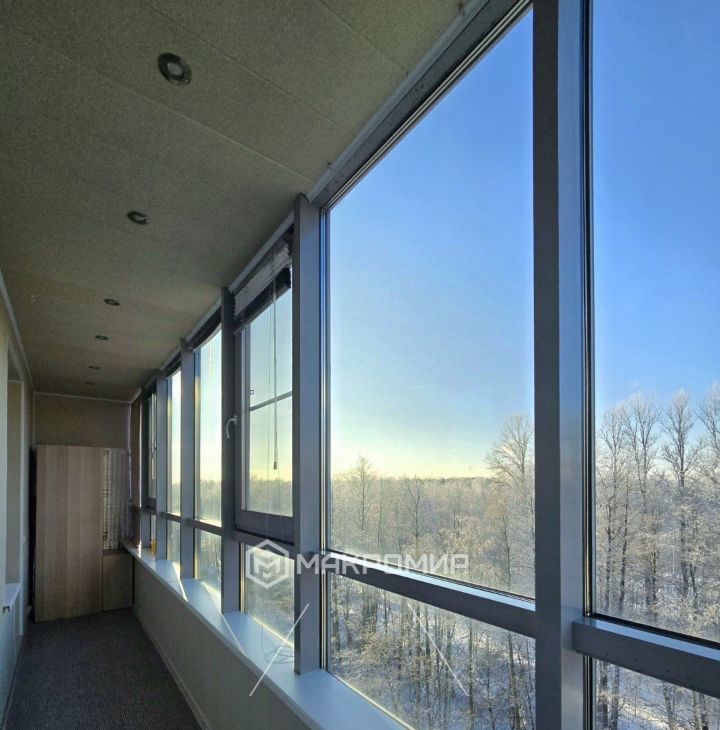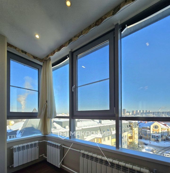 имеет выход на большую лоджию 6.3 м2, где дополнительно сделаны теплые полы, методом инфракрасного подогрева.
