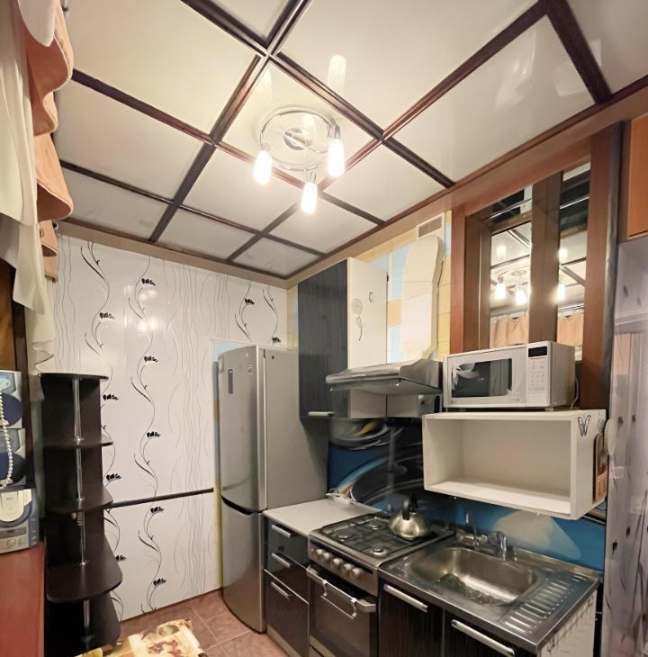 В квартире сделан косметический ремонт. На кухне имеются необходимые для комфортного проживания холодильник и телевизор. Кроме того, вы найдёте стиральную машину. Санузел раздельный, в ванной комнате установлена ванна. Окна квартиры выходят во двор, поэтому вас не будут беспокоить шумные улицы.